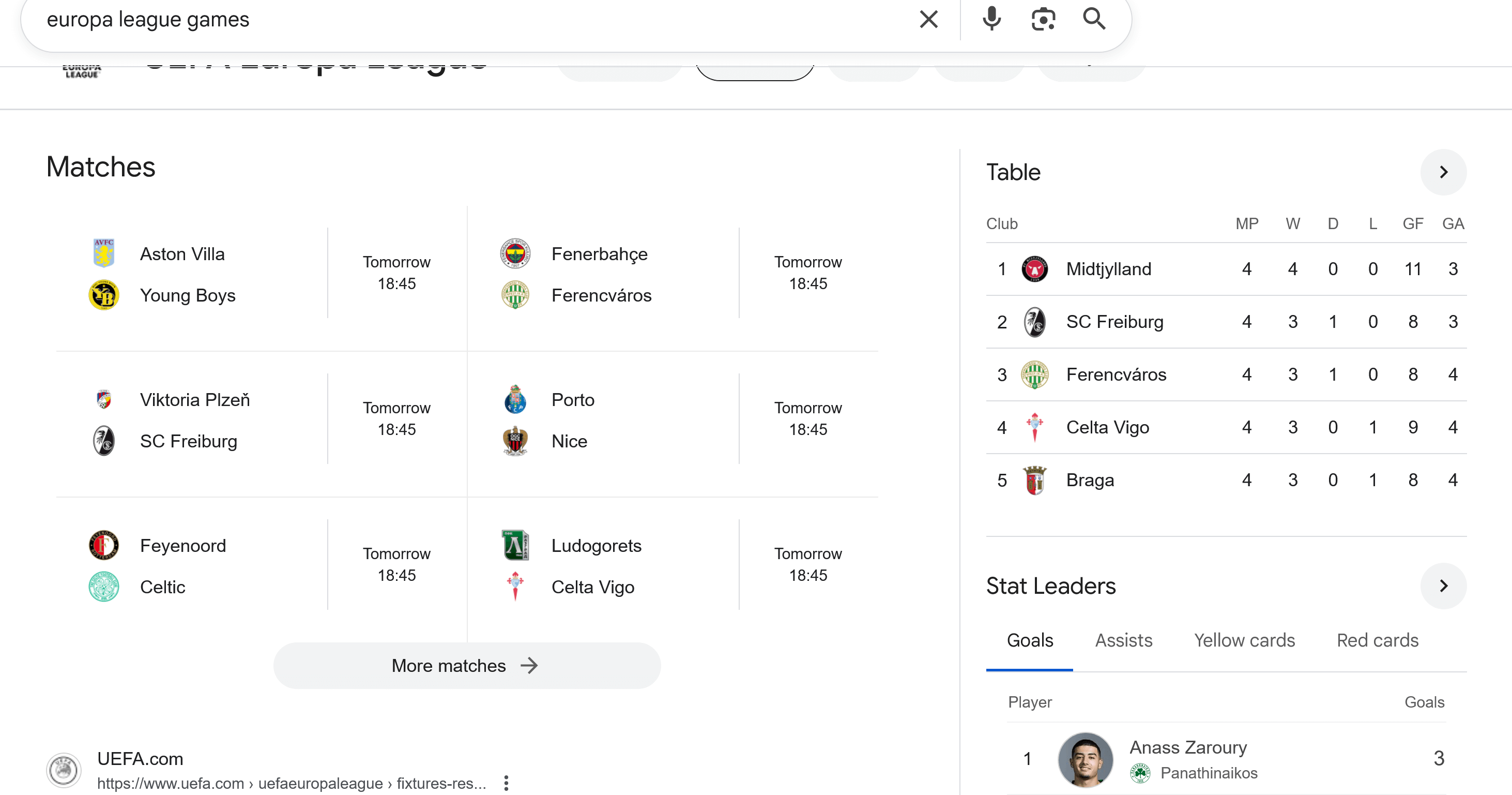 - Балансирани дуели: Плзен vs Фрајбург, Лудогорец vs Селта Виго, Шахтјор vs Олимпијакос, Вест Хем vs Реал Сосиедад.